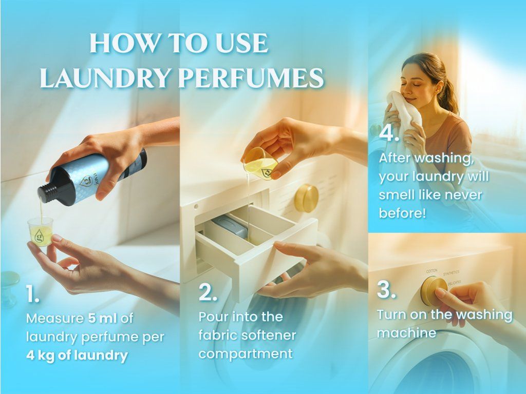 Do not put the perfume in the washing machine drum or in the dryer. They are directly intended for use in the fabric softener container. You don't have to worry about your laundry losing its scent after drying in the dryer. Giovani® perfumes are resistant to external influences and durable. Washed laundry will smell even after using the dryer. The optimum temperature for storing laundry oils is approximately 15-25 degrees Celsius