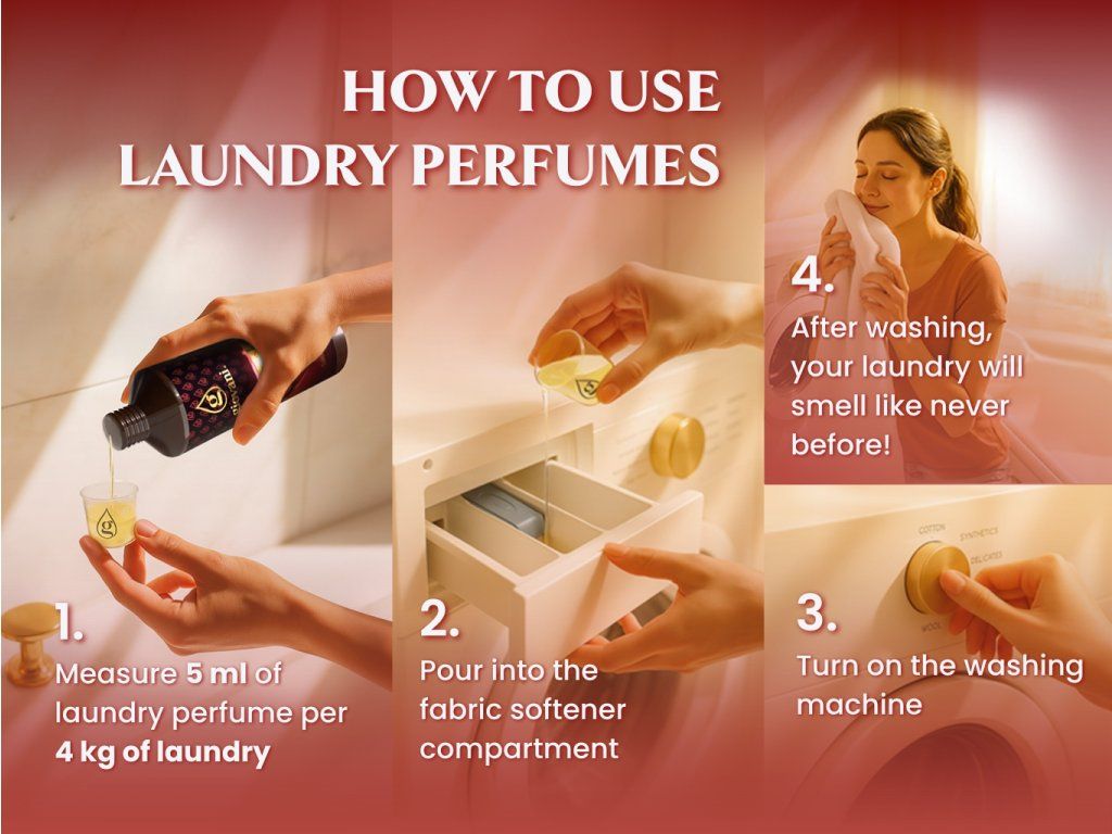 Usage: Pour 5 ml of concentrate into the fabric softener container. This amount is one dose for 4 kg of laundry. The concentrate is not diluted. For dosing, you can use the cap of Giovani® laundry perfume, which corresponds to 3 ml; we recommend using double the amount. To make dosing even more convenient, you can purchase a measuring cup with our logo or a pump for dosing. Just use a small amount and your laundry will be perfectly fragrant!